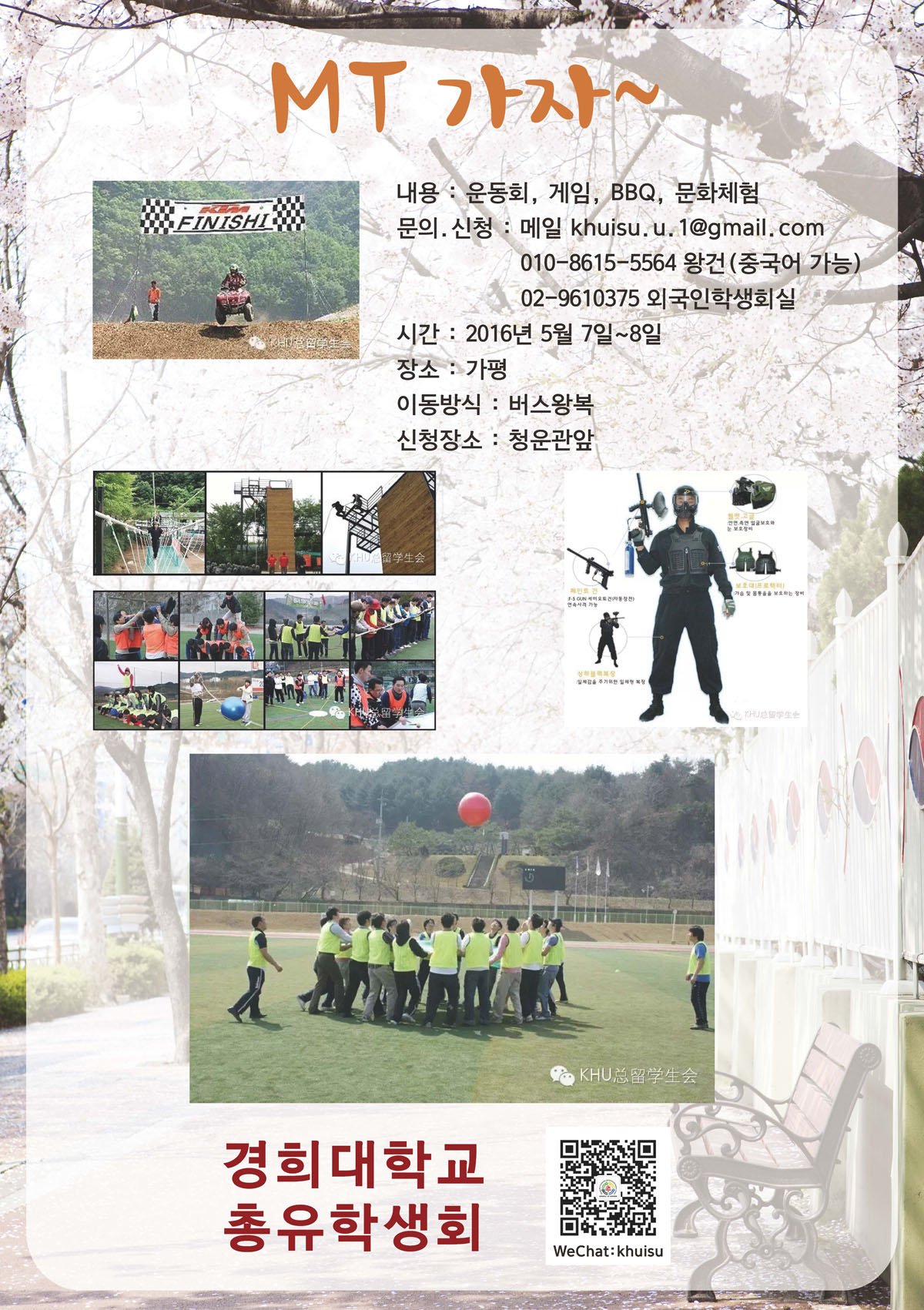 2.메일:khuisu.u.1@Gmail.com (이름,학과,학번,연락처,외국인등록증번호,계좌이체 사진 ) 은행 : 신한은행 110-453-800690 WANG QIAN 신청장소 : 청운관앞 및 외국인 학생회실