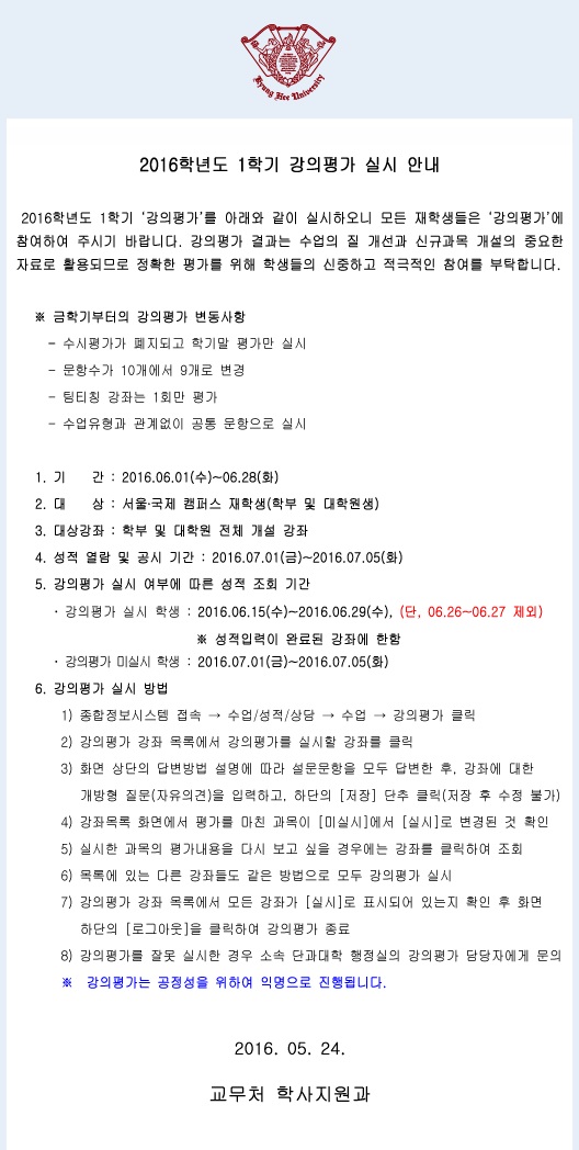 2016-1 강의평가 실시 안내