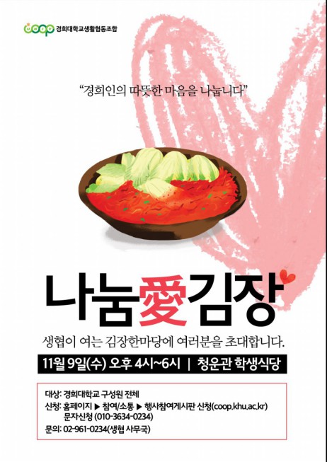 경희대 생협에서 외국인 학생 여러분들을 위해 김장담그기 체험 프로그램을
