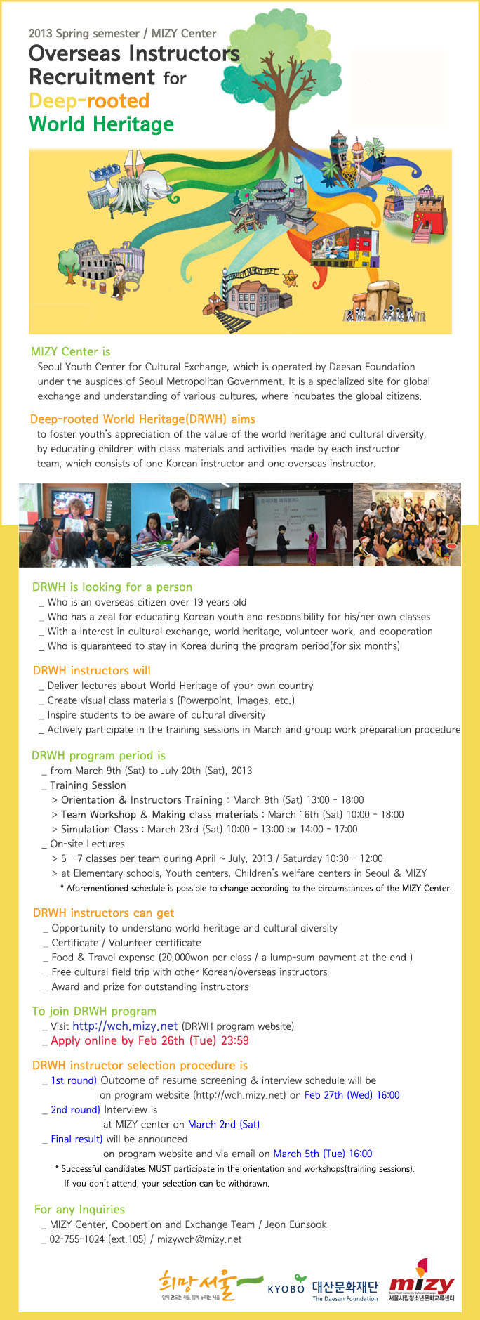 '뿌리 깊은 세계유산' 외국인 자원활동강사 모집