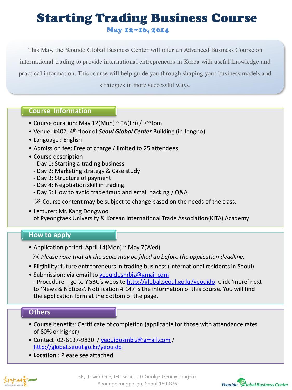 [여의도글로벌비즈니스센터] 비즈니스 심화과정-무역업 창업 실무(외국인)