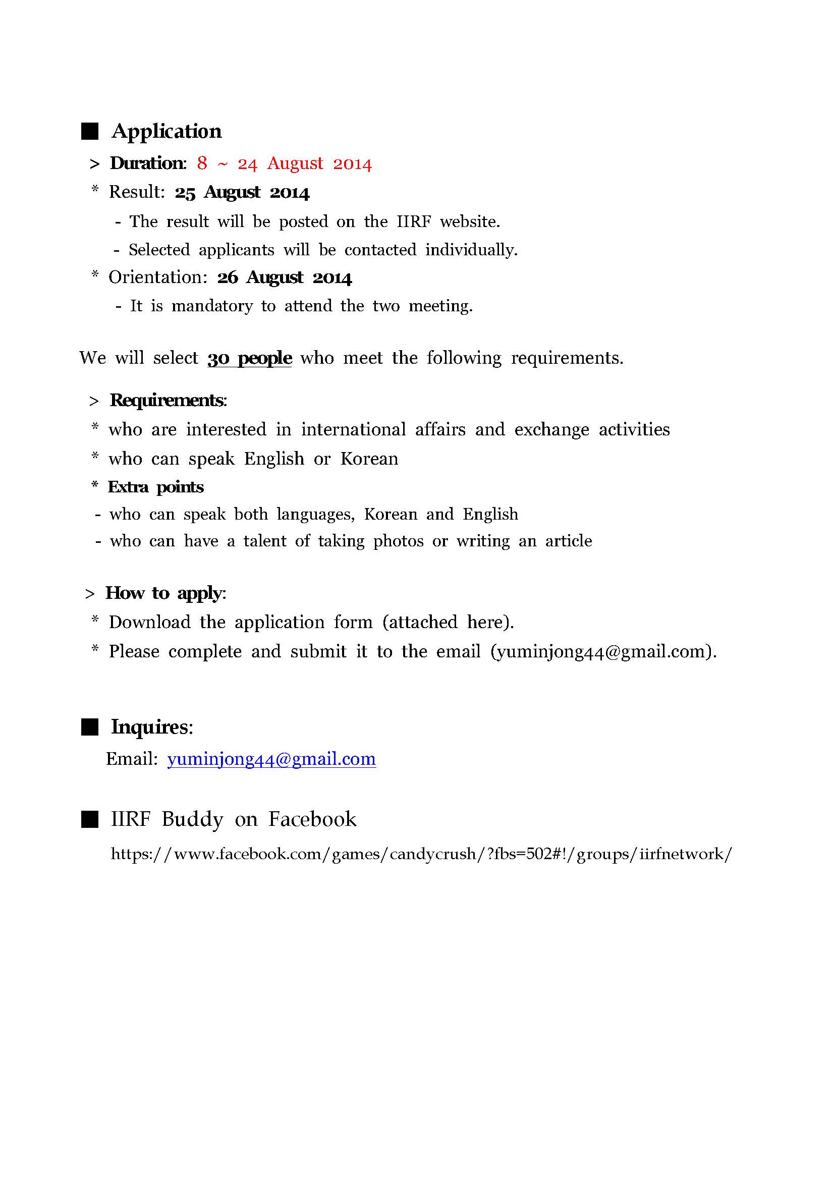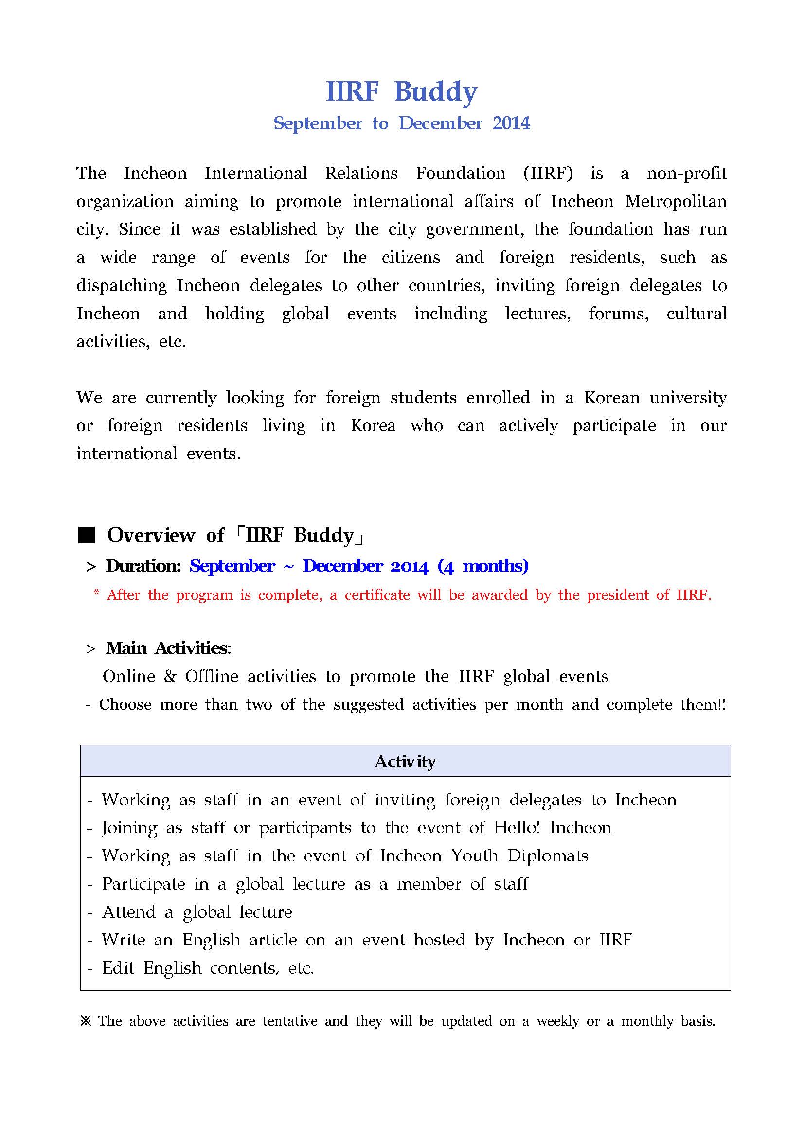 2014년도 하반기 IIRF Buddy Program 참가자 모집