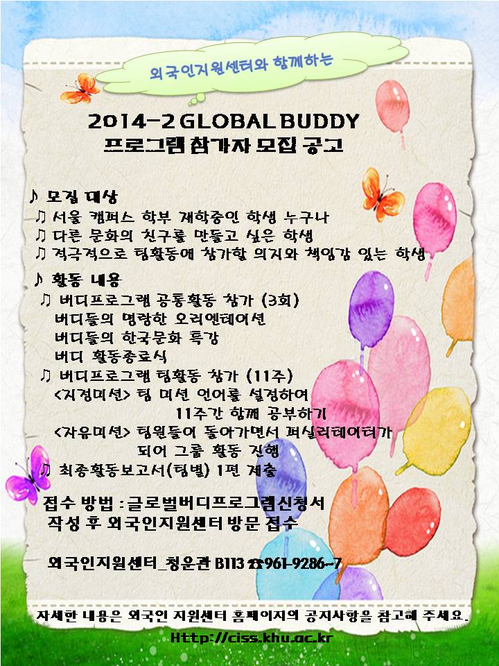 2014-2 Global Buddy 프로그램 참가자 모집 공고
