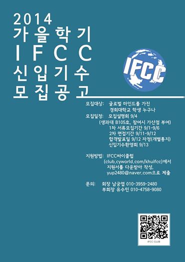 ☞ IFCC에 대한 소개와 구체적인 활동내역 안내, 질의응답을 할 수 있는 설명회가 9월 4일(목) 오후 6시에 열릴 예정입니다. 참가자에게는 17기 지원 시 가산점이 부여되니 많은 참여 부탁드립니다.^^