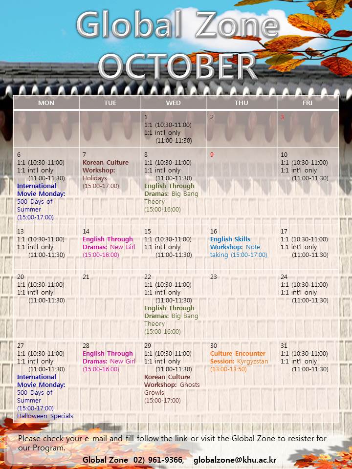 w 기타 문의: 글로벌존 02)961-9366 / globalzone@khu.ac.kr