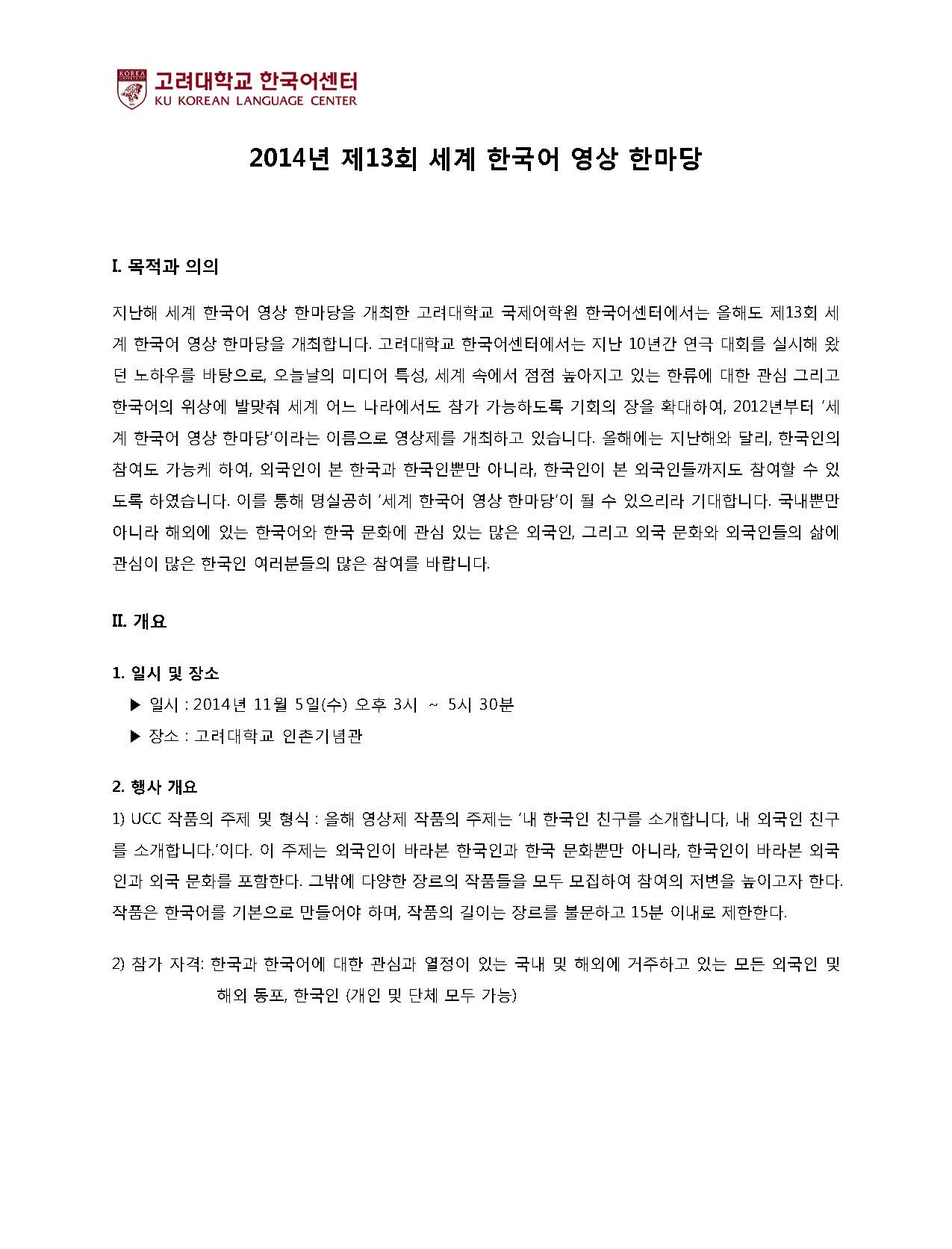 1. 2014년 제13회 세계 한국어 영상 한마당 안내문 1부