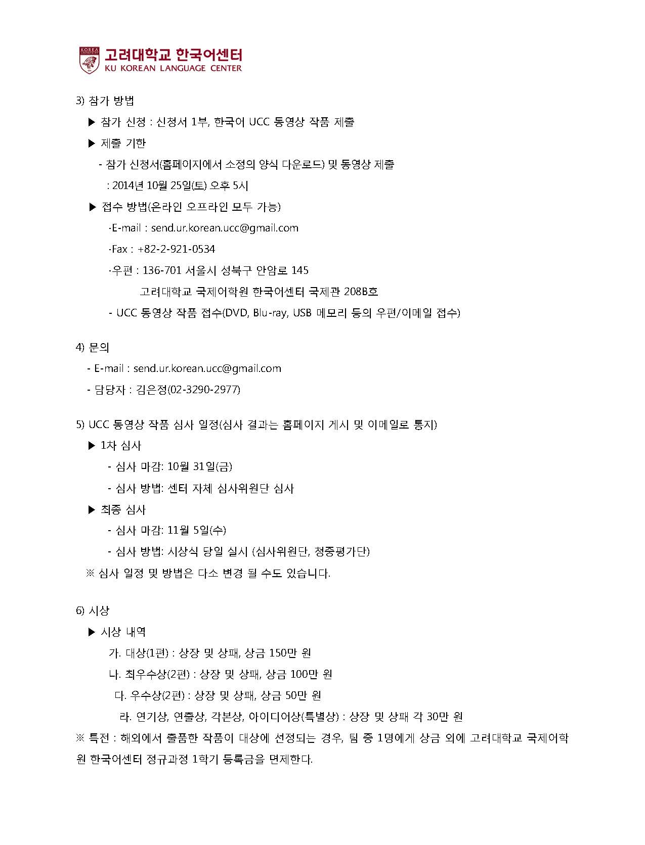 2. 2014년 제13회 세계 한국어 영상 한마당 참가신청서 1부. 끝.